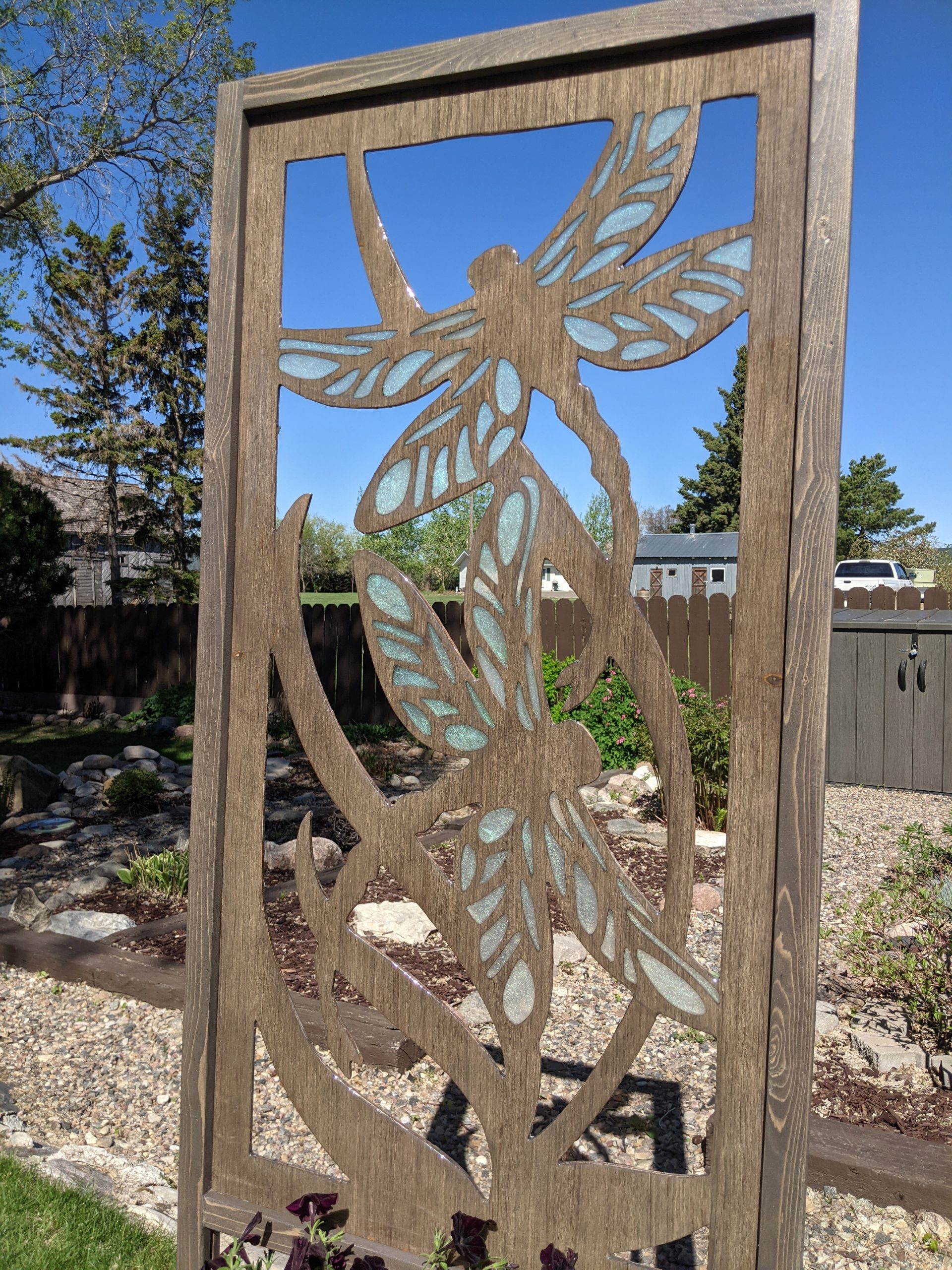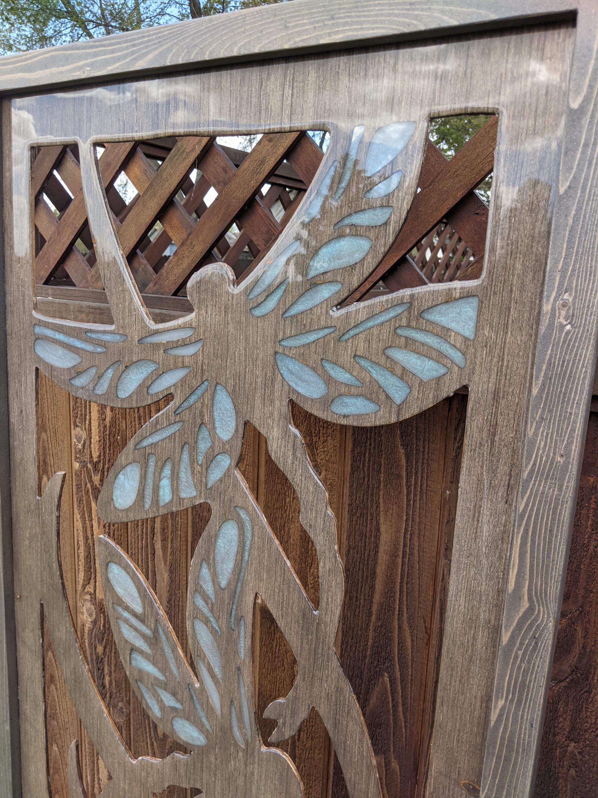 Wooden wall art made with 1/4 inch thick recycled hardwood plywood, approximately 2 feet wide by 5 foot 6 inches tall.